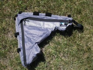 Cuben fiber frame bag with panel loader, inside small pocket, left map pocket, reflective, all for 7.6 ounces. Going on a titanium road bike for 3,000 mile tour around the American West.